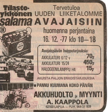 Asiakaspalvelua ja akkuja Lapualla vuodesta 1958